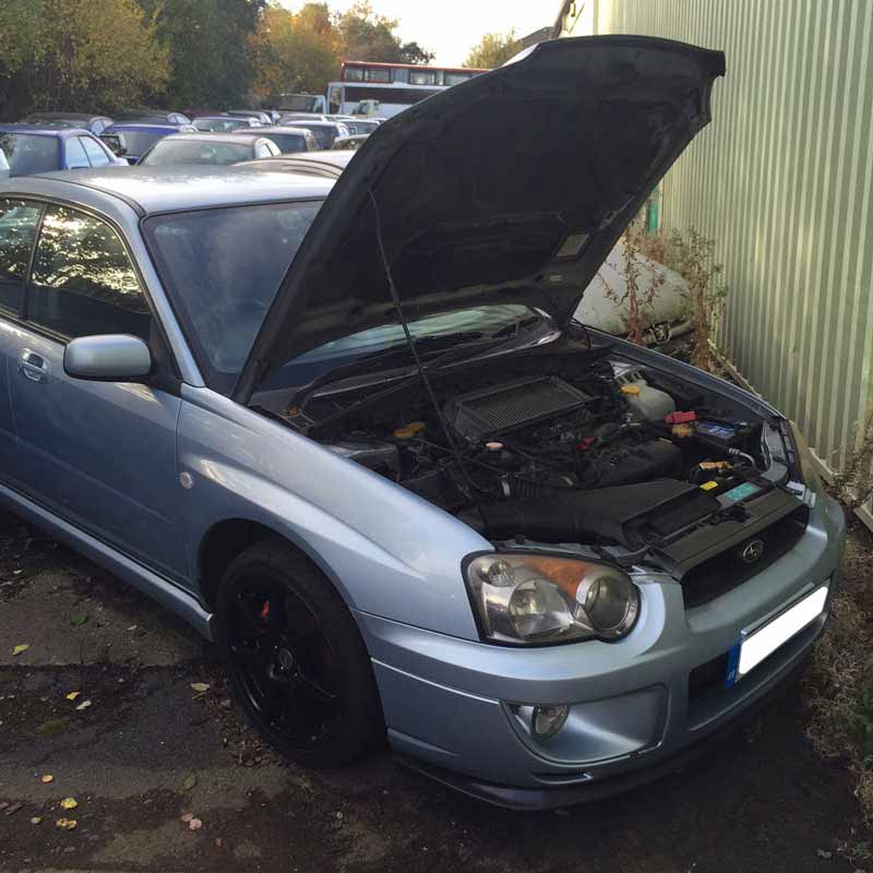 Also fing ich an mich mit einem UK-Import zu beschäftigen. Zu diesem Zeitpunkt war die Auswahl in UK auf den ersten Blick wirklich beeindruckend. Da ich öfter in England war, habe ich also auch angefangen mir einige Fahrzeuge mal in natura anzuschauen und war doch immer wieder aufs neue erstaunt oder entsetzt wie sehr sich die Fahrzeugbeschreibung vom tatsächlichen Zustand unterschieden hat. Eines meiner Highlights war ein schwarzer 2005er WRX mit angeblich 65.000 Meilen auf der Uhr und „perfect bodywork“. Selbstverständlich sollte dieser komplett unmodifiziert sein. Schon beim ersten Blick auf das Blechkleid fielen mir die Beulen rund um auf, was aber durch die Löcher in der Stoßstange noch verstärkt wurde. Außerdem hatte der Vorbesitzer einige Zusatzinstrumente „sauber“ mit Silikon ins Armaturenbrett eingeklebt. Auch ansonsten muss das Fahrzeug vermutlich eher 200.000 als 65.000 Meilen gehabt haben, zumindest ließ mich der Zustand des Innenraums das annehmen. Der Motor klang wirklich Angst einflößend. Selbstverständlich